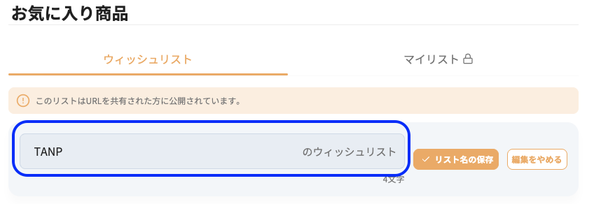 ※ウィッシュリストは検索結果などには表示されず、URLを知っている人だけが閲覧可能です。