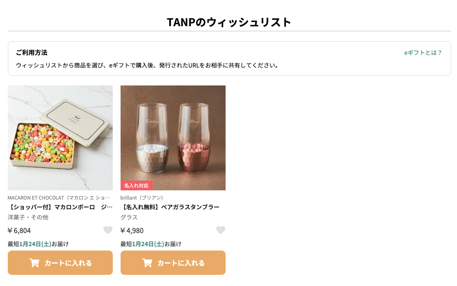 - ウィッシュリストは eギフト専用 です